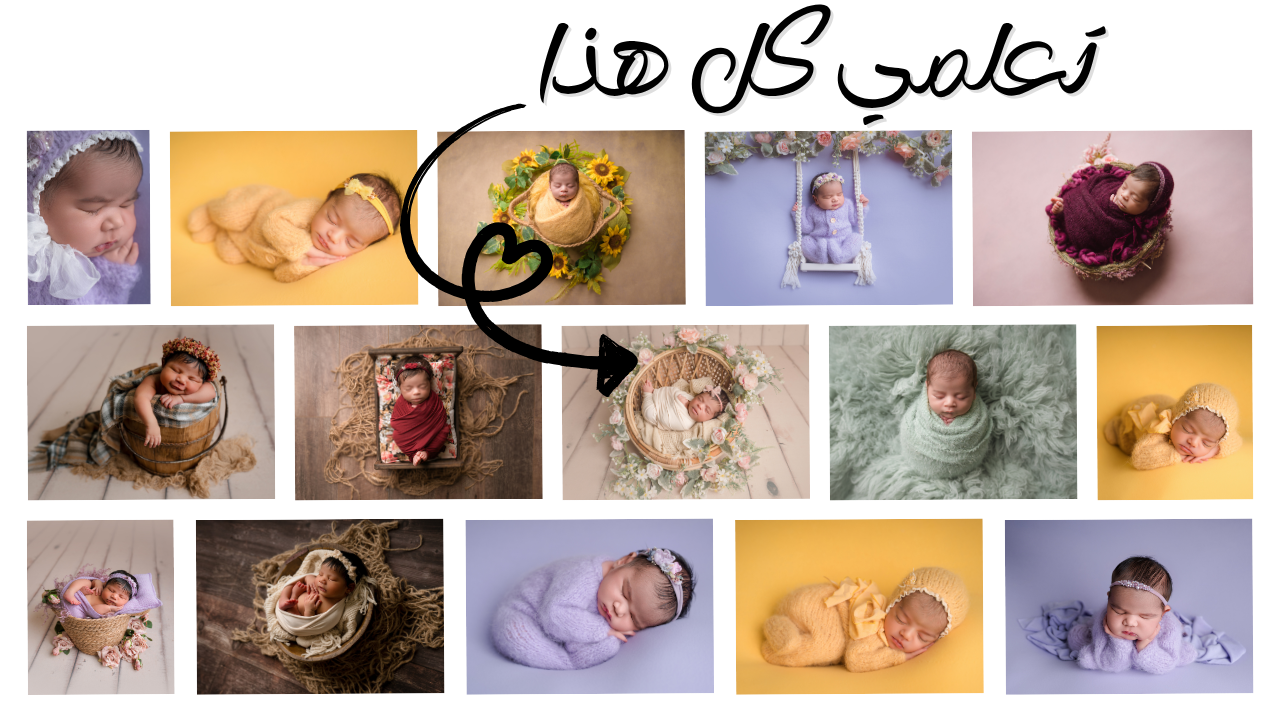 لفّات تصوير المواليد ، وضعيات تصوير المواليد ، الإضاءة ، زوايا التصوير ، ثيمات التصوير ، و الكثير الكثير